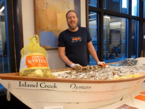 Of course, no sustainable food summit would be complete without good eats, and the Financing Sustainable Food System summit showcased an abundance of local and regional treats, including grass-fed beef stew with panelist Chuck Lacy’s Hardwick Beef, fish and seafood from panelist Jared Auerbach’s Red’s Best, and many donated items, including an Island Creek Oysters raw bar, desserts from Henrietta’s Table of Cambridge, an assortment of prepared foods produced at Boston culinary incubator CropCircle Kitchen, and dozens of other tempting New England products.