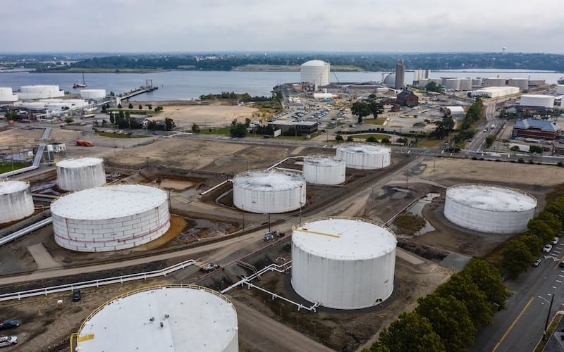 The Shell Oil tank terminal at Port of Providence in Rhode Island could spill oil into the community and coastal waters if a strong storm should hit. Photo: Ecophotography